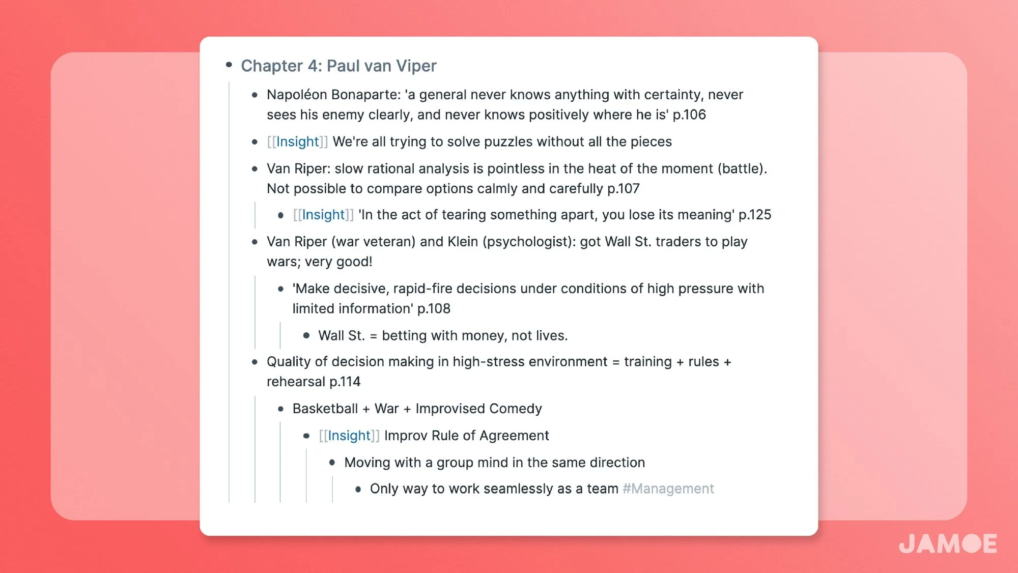 We’ve also included some guidelines for how we make our Jump Notes easier to review and rewrite. In most cases, your Jump Notes on a book will be sufficient, but you may want to rewrite them using a more heavy-duty technique, such as the HQ&A technique, to push your understanding further.