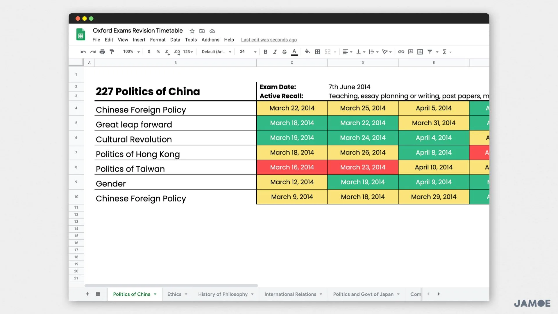 That is the skeleton of your Retrospective Revision Timetable.